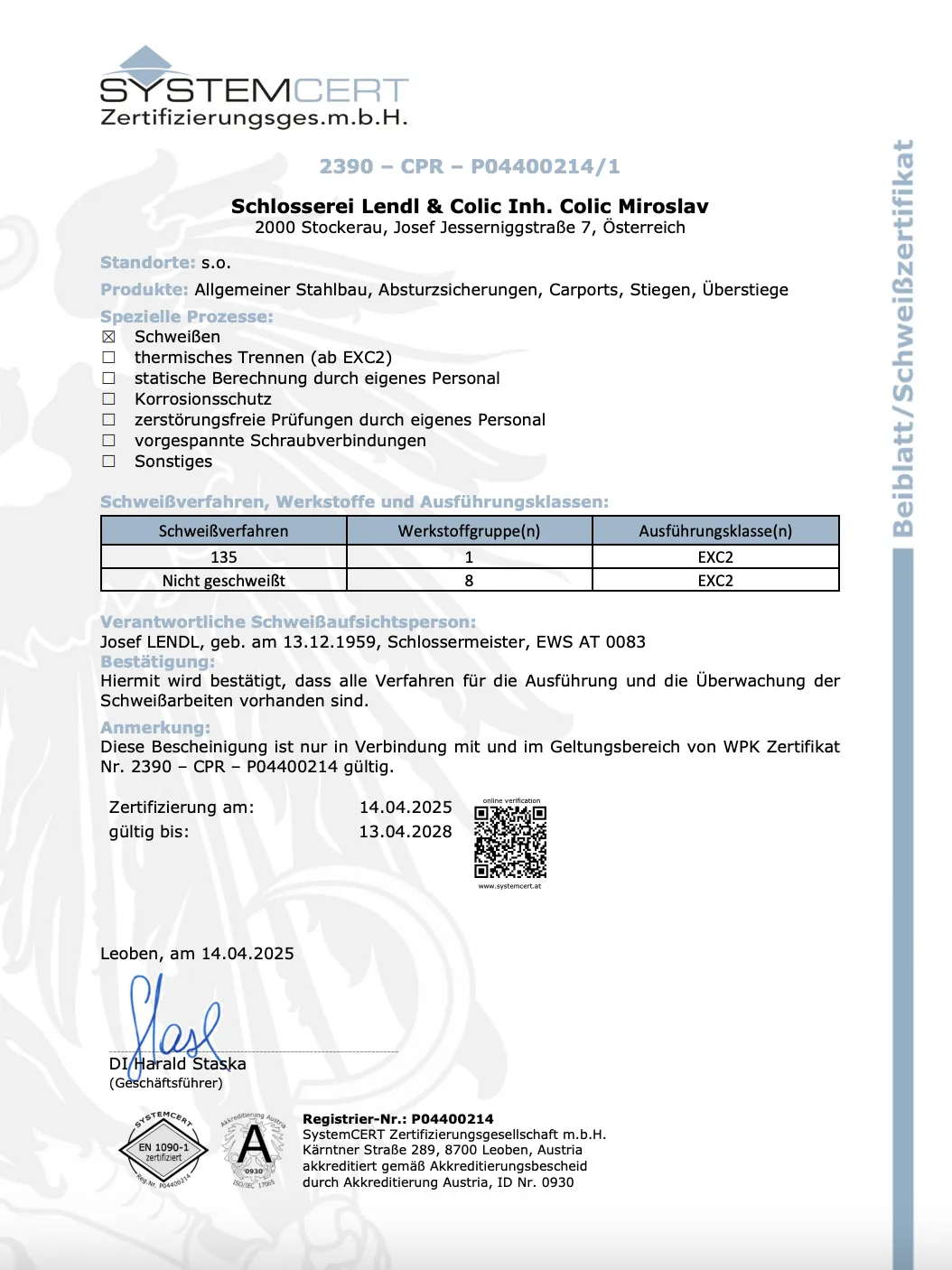 Copyright Schlosserei Lendl 2026. All rights reserved | ImpressumDatenschutz
